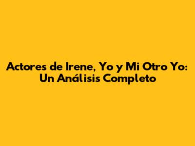 Actores De 'Irene, Yo Y Mi Otro Yo': Un Vistazo Detallado