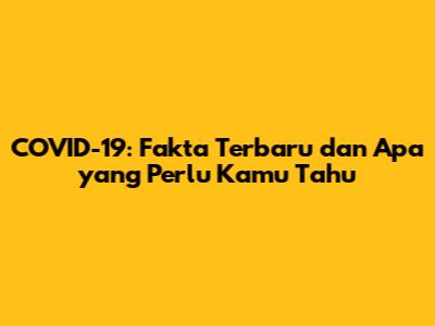 COVID-19: Fakta Terbaru Dan Apa Yang Perlu Kamu Tahu