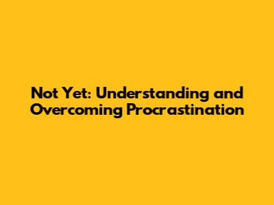 Not Yet: Understanding And Overcoming Procrastination