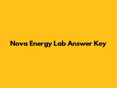 Nova Energy Lab Answer Key: Get The Right Answers!