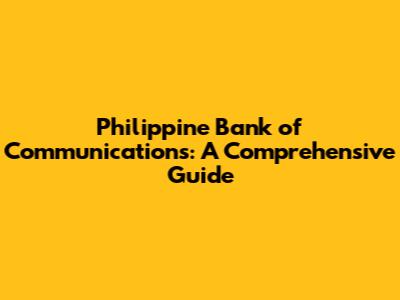 Philippine Bank Of Communications: History, Services & More