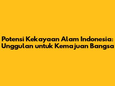Kekayaan sumber daya alam (SDA) Indonesia adalah anugerah yang harus kita jaga dan manfaatkan secara bijaksana. Potensi SDA yang besar, mulai dari mineral, hutan tropis, laut, hingga energi terbarukan, harus dikelola secara berkelanjutan untuk memberikan manfaat bagi generasi sekarang dan mendatang. Pemanfaatan SDA harus mempertimbangkan aspek lingkungan, sosial, dan ekonomi. Pemerintah, swasta, dan masyarakat harus bekerja sama untuk mencapai pembangunan yang berkelanjutan. Dengan pengelolaan SDA yang tepat, Indonesia dapat menjadi negara yang maju, sejahtera, dan berwawasan lingkungan. Mari kita jadikan kekayaan alam Indonesia sebagai unggulan untuk kemajuan bangsa!