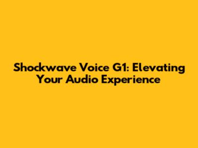 Shockwave Voice G1: Unveiling The Power Of Enhanced Audio