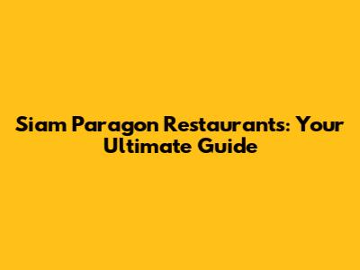 Siam Paragon Restaurants: Your Ultimate Guide