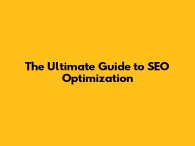 The Ultimate Guide To SEO Optimization