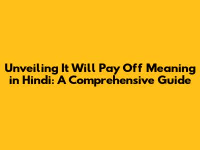 Unveiling 'It Will Pay Off' Meaning In Hindi: A Comprehensive Guide